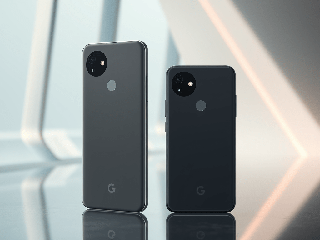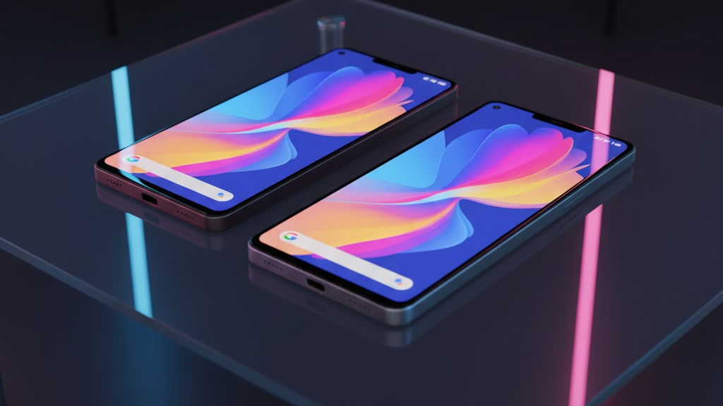 | Top (Featured) | “Google Pixel 10 and Pixel 10 Pro on a glossy surface with bright OLED displays and futuristic ambient light — ultra-realistic 8K render.” | Google Pixel 10 and Pixel 10 Pro displayed side by side on a glossy surface with glowing screens. |
